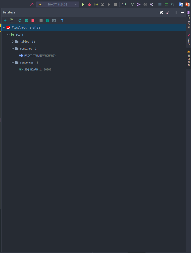 위의 사진처럼 데이터베이스 오라클을 연동시켜놨습니다.
