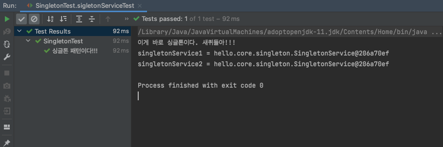 System.out.println("이게 바로 싱글톤이다. 새퀴들아!!!");