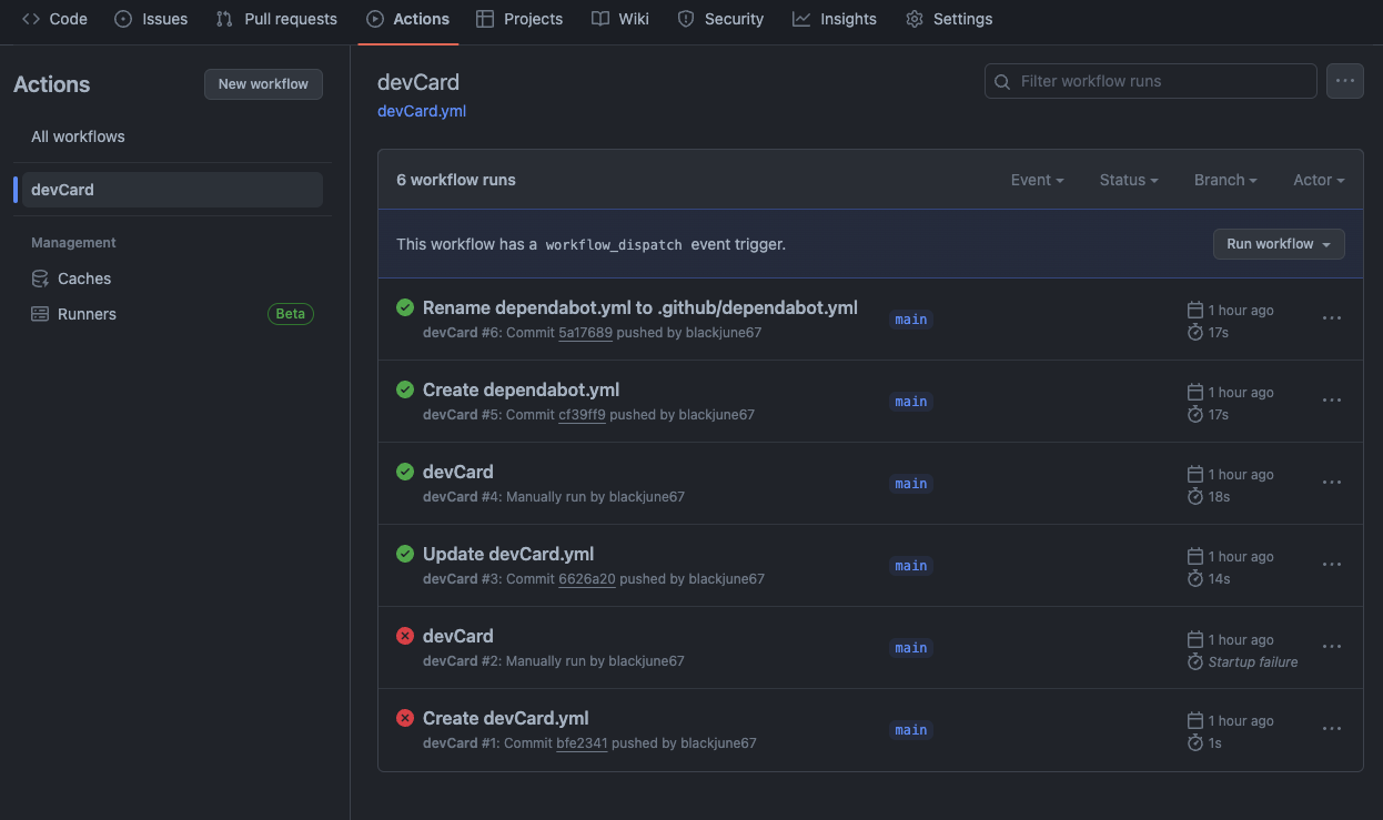 DevCard를 자동으로 업데이트할 수 있는 형식의 yml코드 입니다