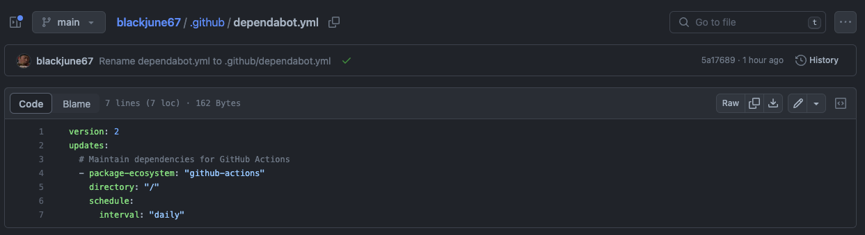 GitHub Dependabot의 최신화를 위해서 아래와 같이 추가합니다.