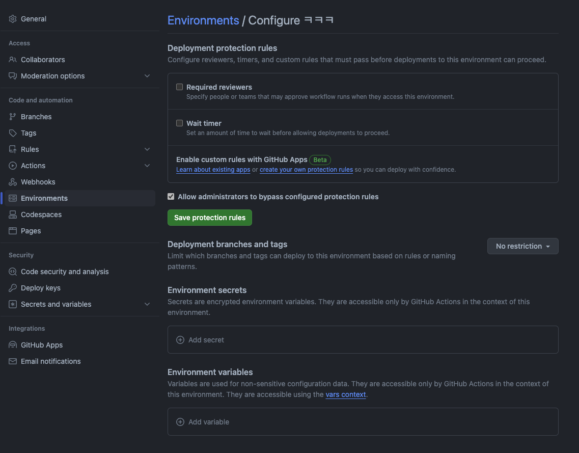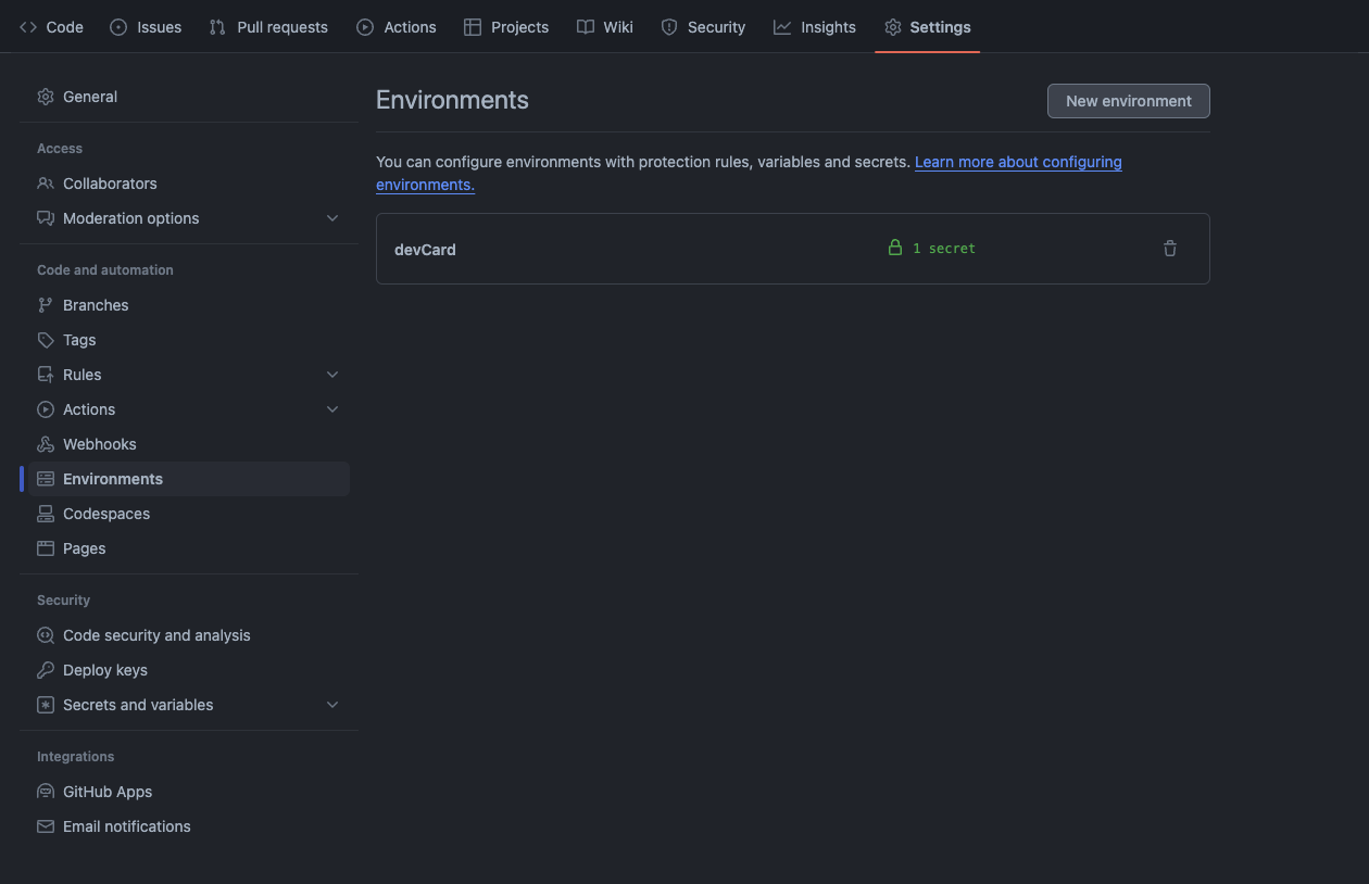 왼쪽 사이드바를 보시면 Environments라는 메뉴를 클릭합니다!
