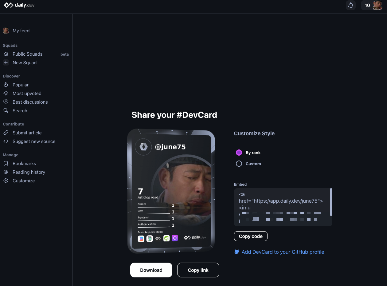 git] Git 프로필에 DevCard 넣기 feat. daily.dev