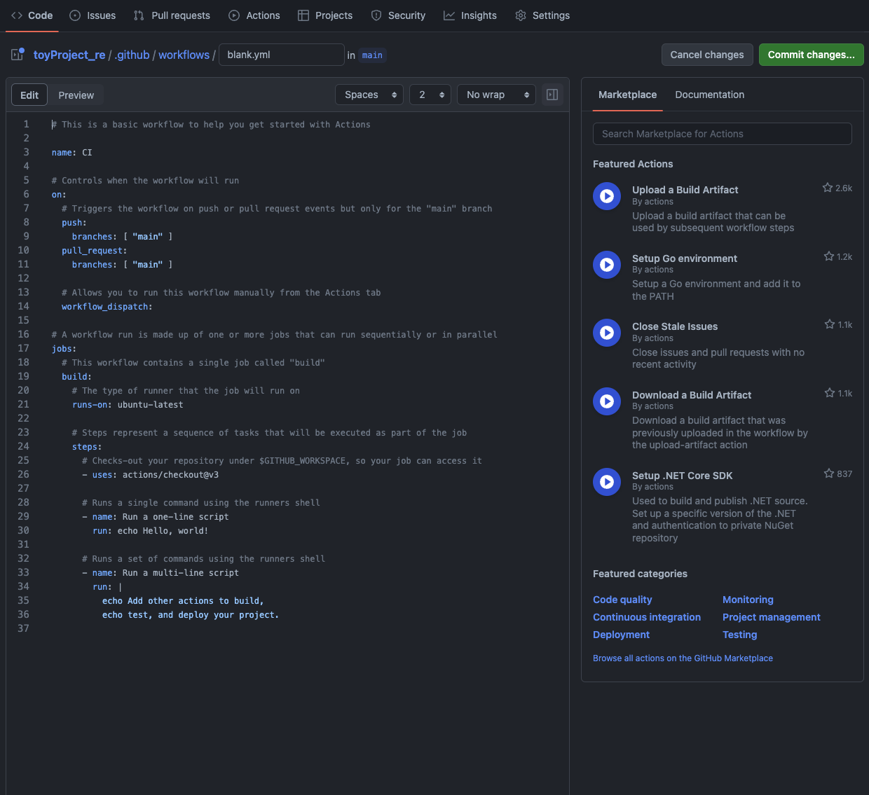 yml 파일이 하나 예시로 나와있지요? 이제 이 예시 파일을 수정할겁니다!