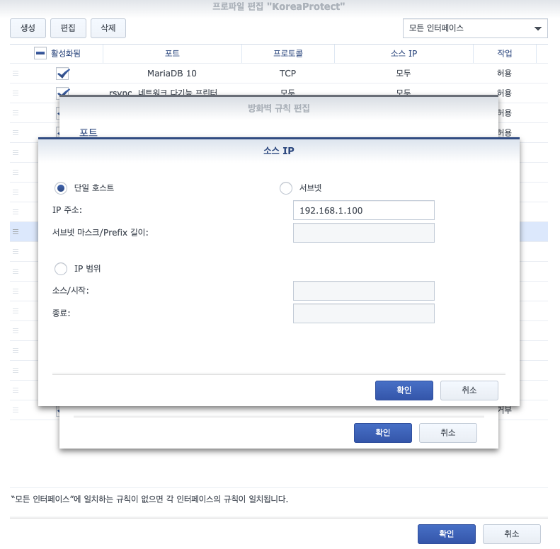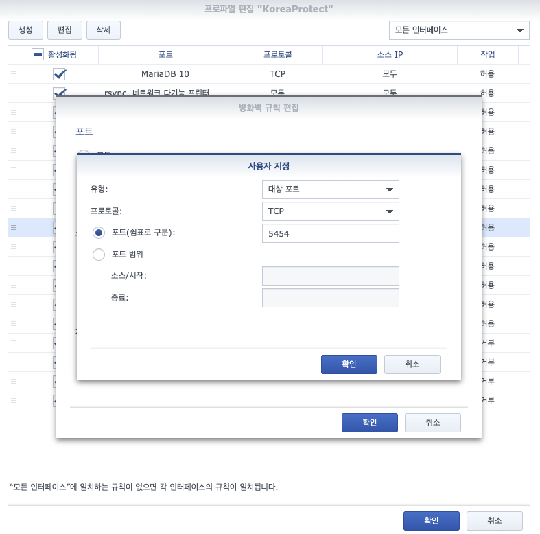 7) NAS 방화벽 설정 및 포트포워딩 설정