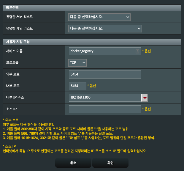 레지스트리 URL : https://admin.asuscomm.com:5454