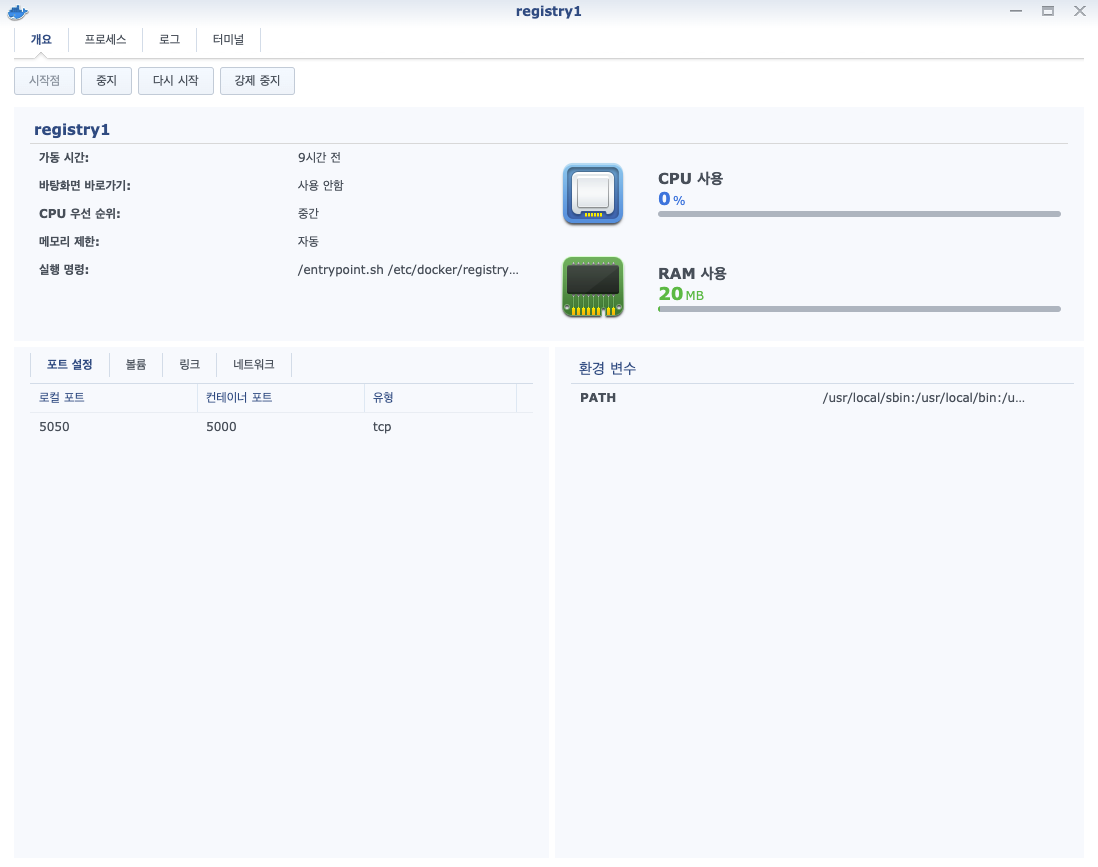 포트: 5050 (registry 도커 이미지 설정 시 로컬 포트를 입력하면 됩니다)