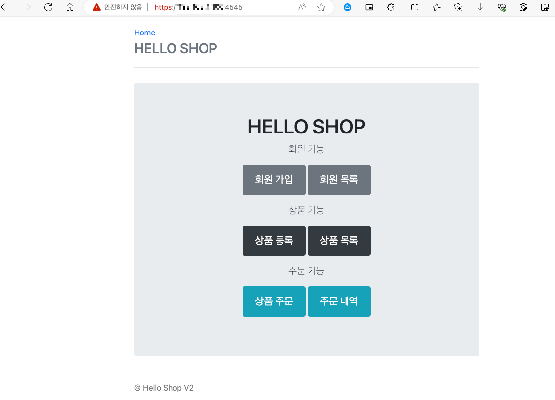 http://192.168.1.1:4545 IP주소로 입력하니 정상적으로 나옵니다! (김영한님의 JPA 기본 강좌 프로젝트를 테스트로 배포해봤습니다)