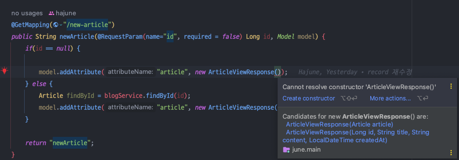 model.addAttribute("article", new ArticleViewResponse()); // ! 에러 발생