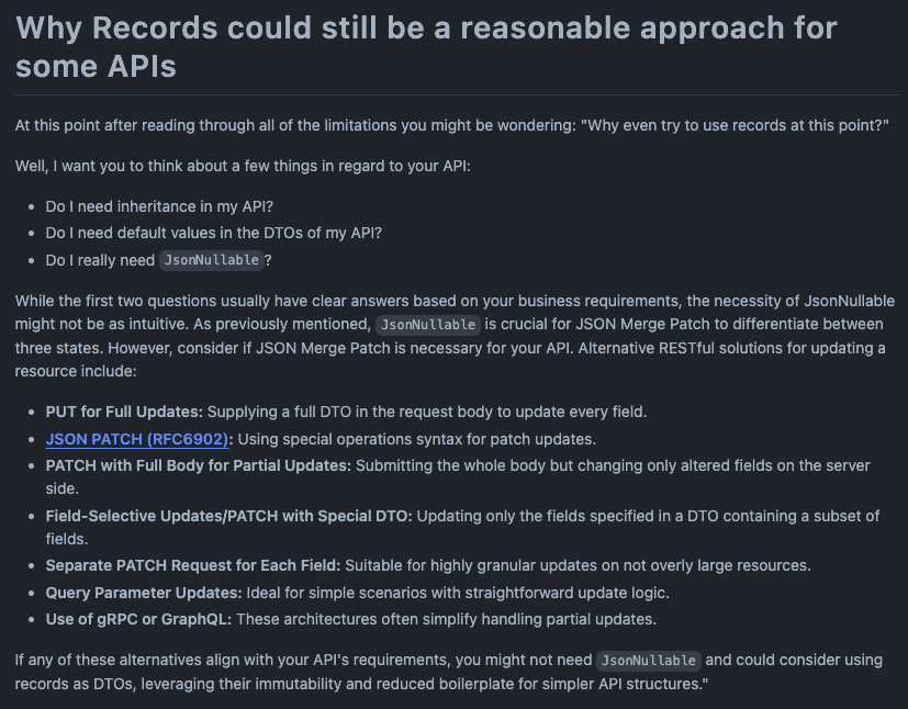 아래는 record를 검색하다가 발견한 github인데 새로운 프로젝트를 하면서 DTO를 레코드로 적용한 성공사례에 대해서 나눈 대화입니다 저는 JSON까지 활용하지 않았지만 JSON까지 활용한 예시도 보여주더군용