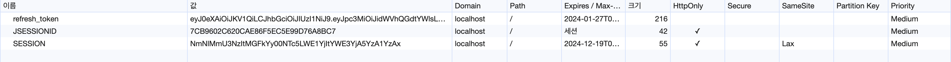 쿠키에 드디어 제대로된 값들이 들어있는 걸 확인했습니다!!